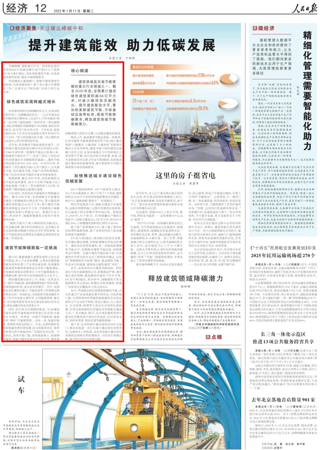 人民日報:提升建筑能效 助力低碳發展(經濟聚焦·關注碳達峰碳中和