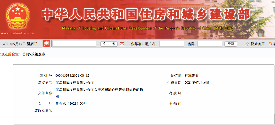 9月15日,住房和城鄉建設部發布了關于綠色建筑標示式樣的通知。按照《綠色建筑標識管理辦法》要求,住建部進一步完善了綠色建筑標識證書式樣,增加了標牌式樣。