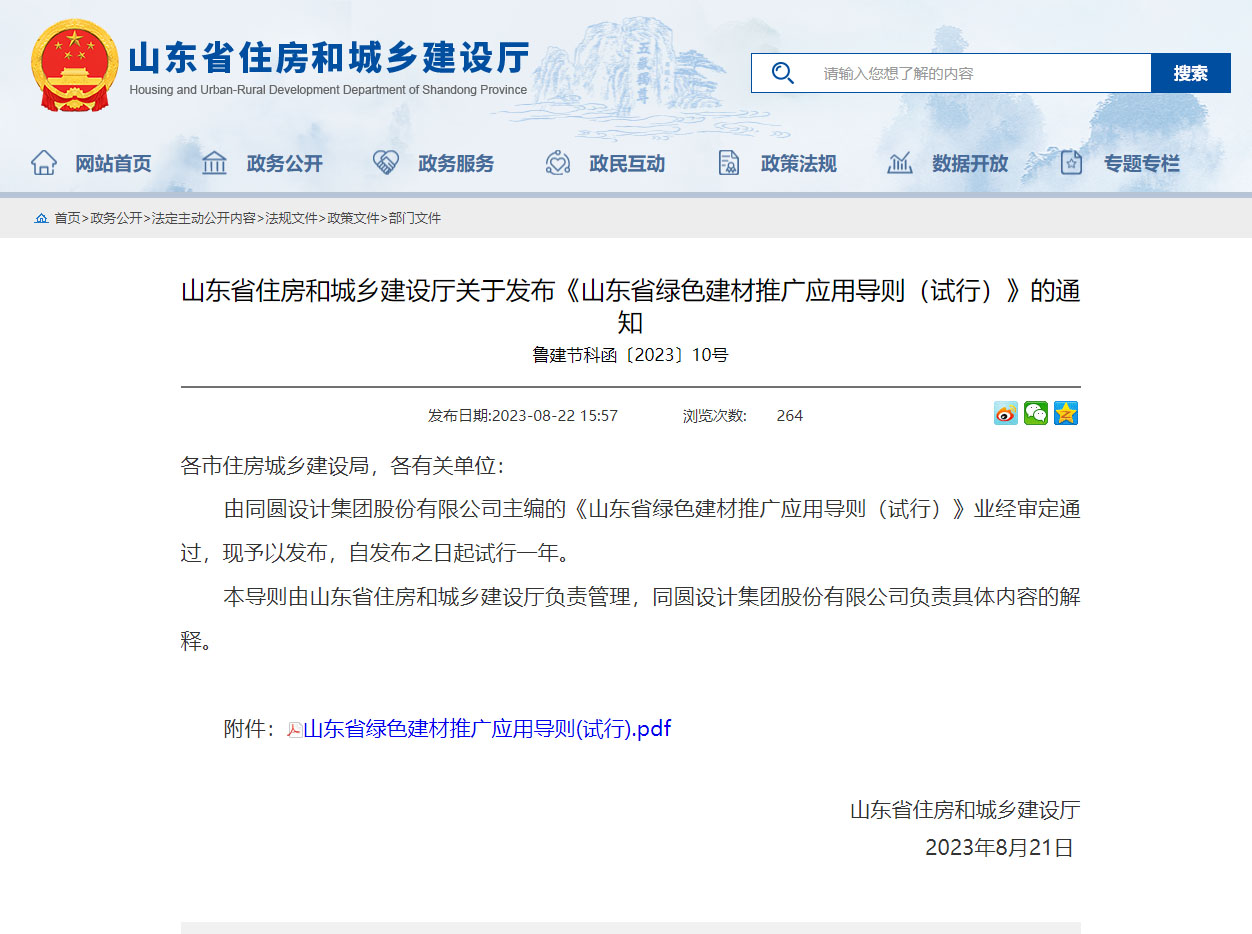 省住房城鄉建設廳關于發布《山東省綠色建材推廣應用導則(試行)》